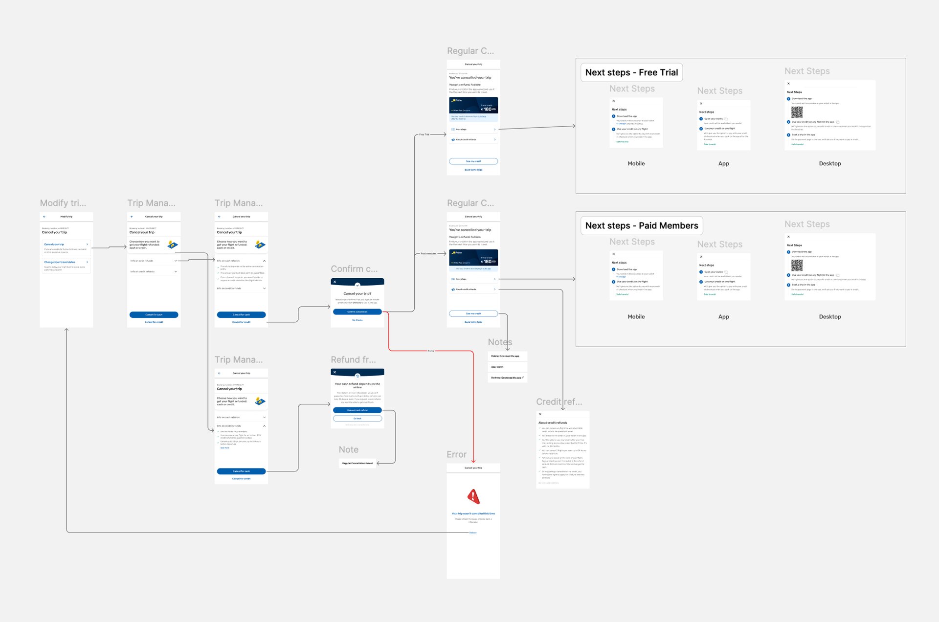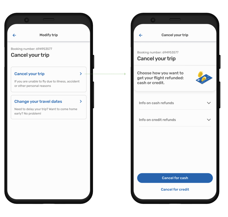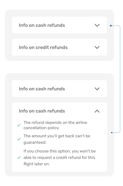 Post-cancellation was designed to close the story with clarity: a factual refund confirmation, straightforward guidance on where the credit lives, and explicit next steps.